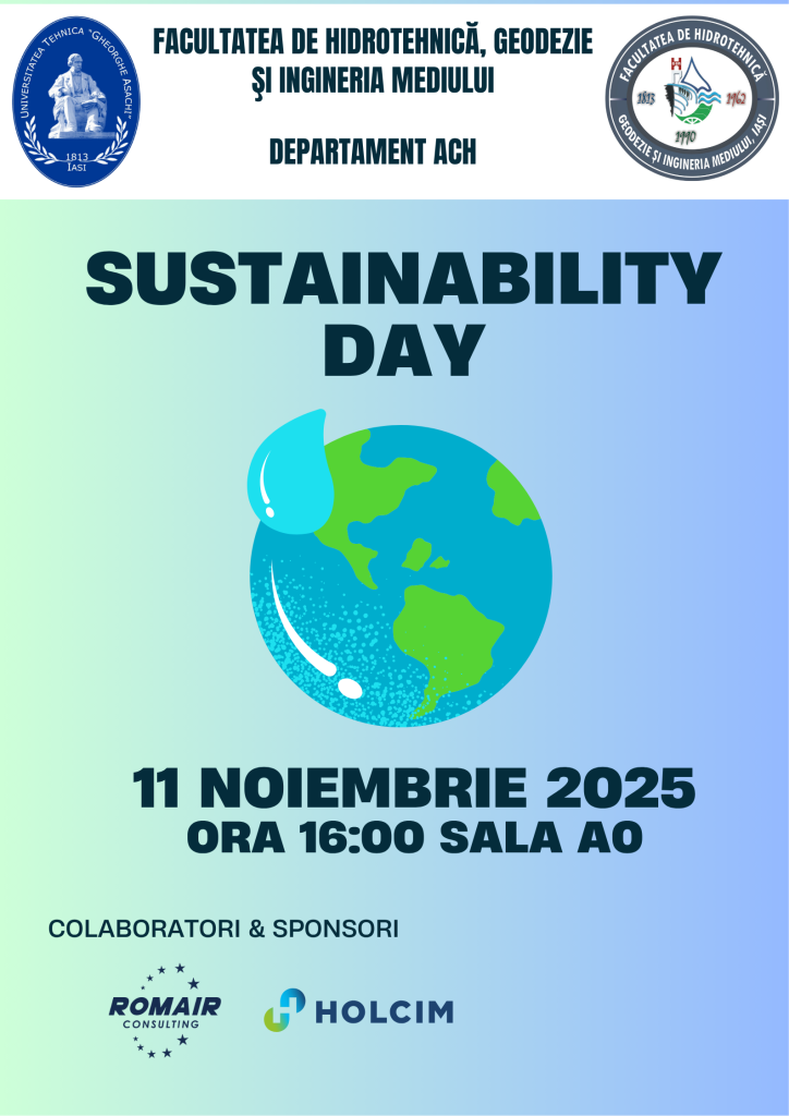 Facultatea de Hidrotehnică, Geodezie și Ingineria Mediului te invită la o nouă ediție a Sustainability Day, un eveniment dedicat conștientizării și promovării sustenabilității în rândul studenților și cadrelor didactice.